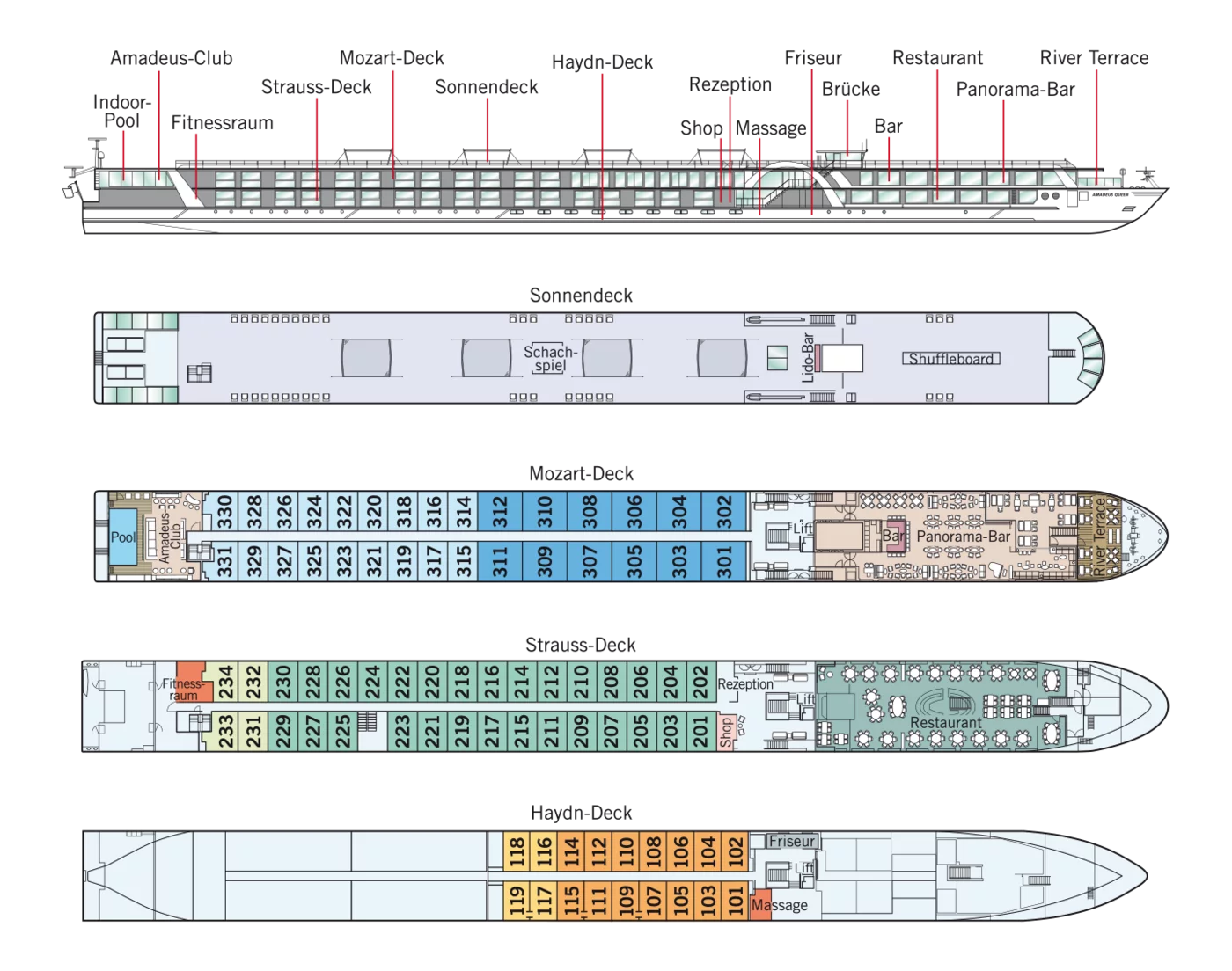 Located on the same level as the restaurant. Identical to the Staterooms B, just one level below.