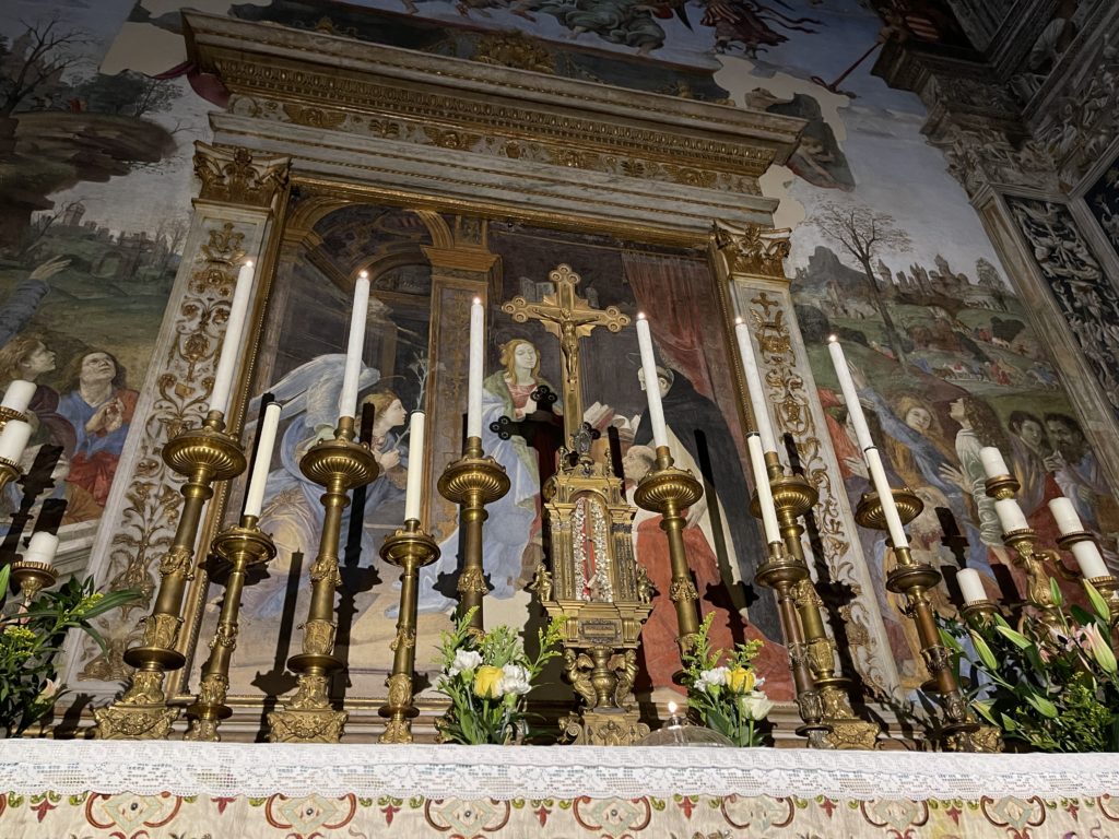 Most of Saint Thomas Aquinas is in his tomb in the French town of Toulouse. But the Dominican basilica of Santa Maria sopra Minerva has the relic of his arm.
